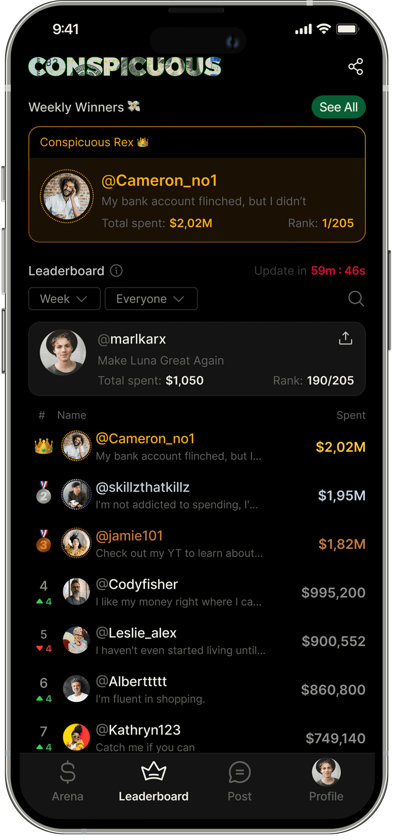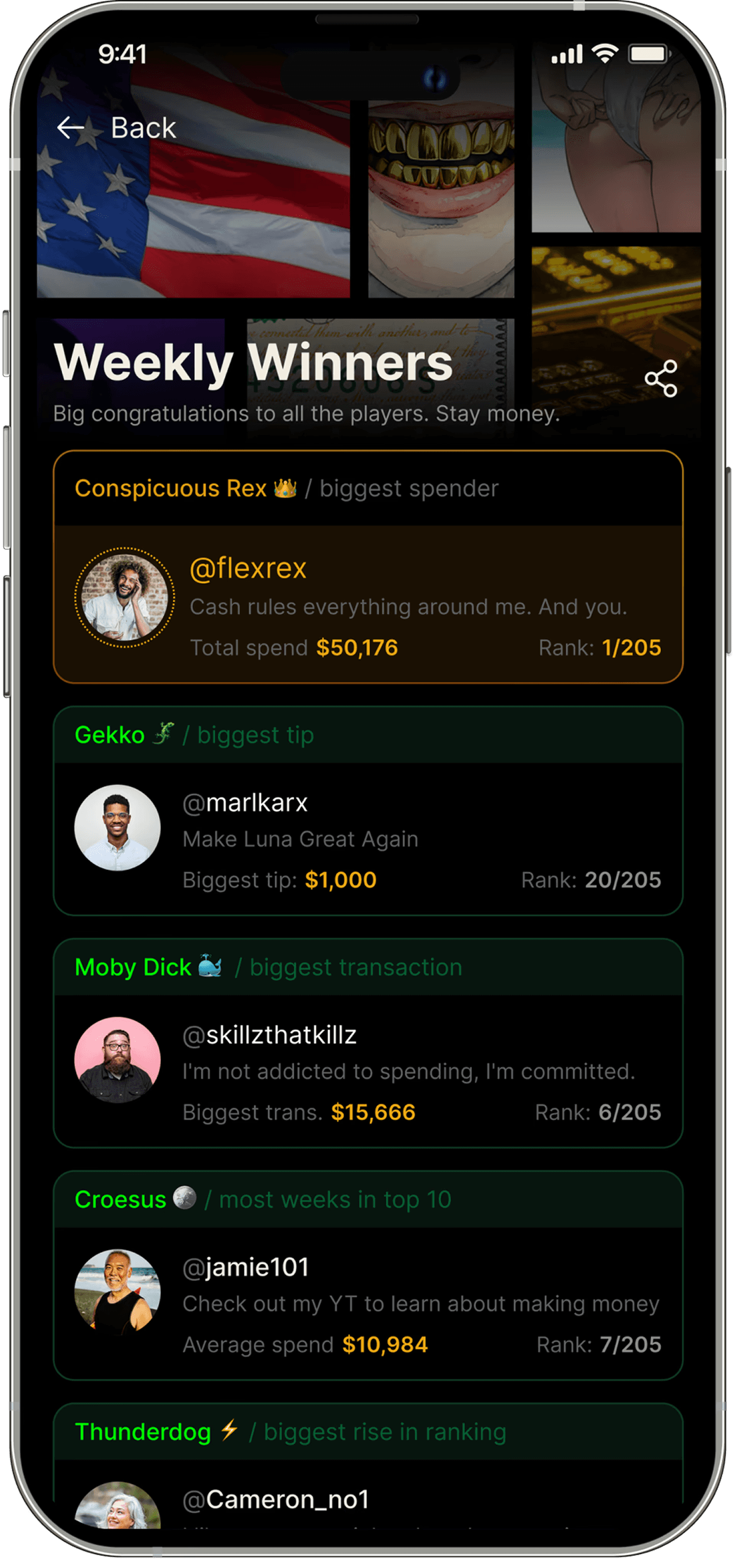 To the world's first spending leaderboard.